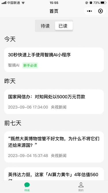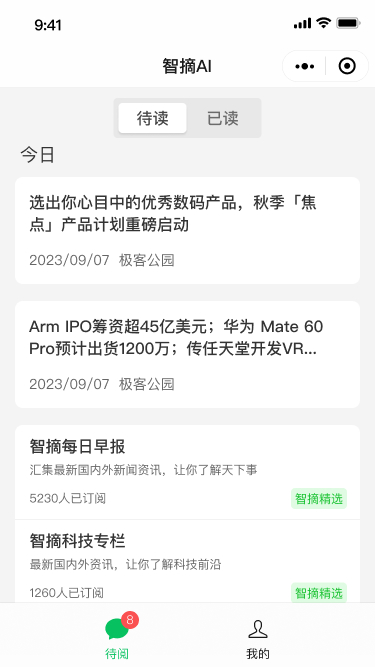 重要內(nèi)容無法抽出時間立刻閱讀?直接用智摘AI閱讀把文章一鍵歸檔至待閱清單,閑暇時即可拉出來未閱文章專注閱讀。