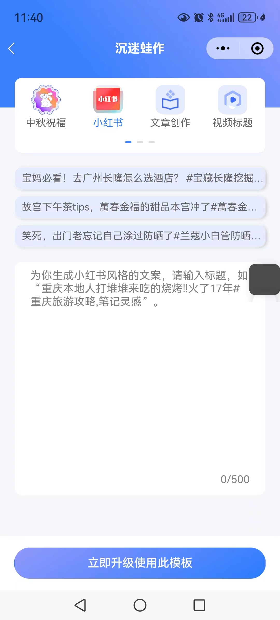 寫作蛙,是一款基于AI大模型的智能寫作輔助工具,為用戶提供內容創意,輔助用戶快速完成文章等文案的撰寫。