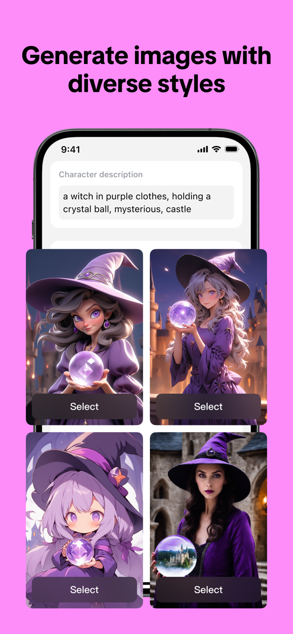 使用我們的圖像生成功能為您的角色和故事提供獨特的視覺識別。從各種風格中進行選擇,將您的想象力變為現實。