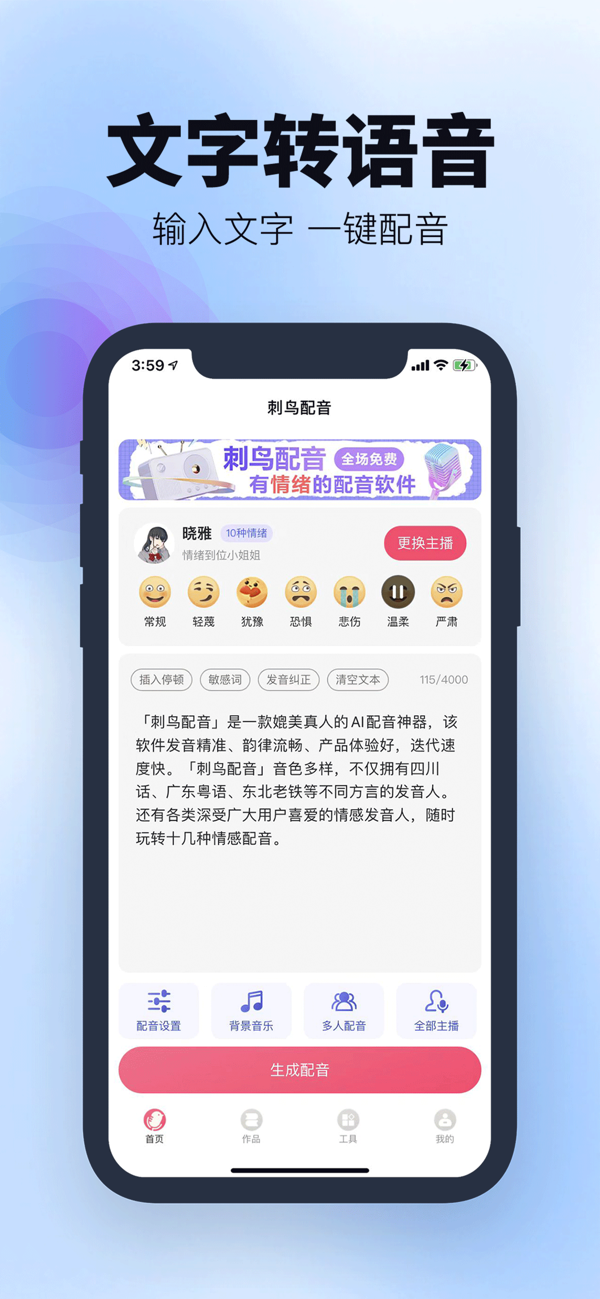 支持調整語速、語調、音量、背景音樂,讓配音生動有趣,更吸引人;