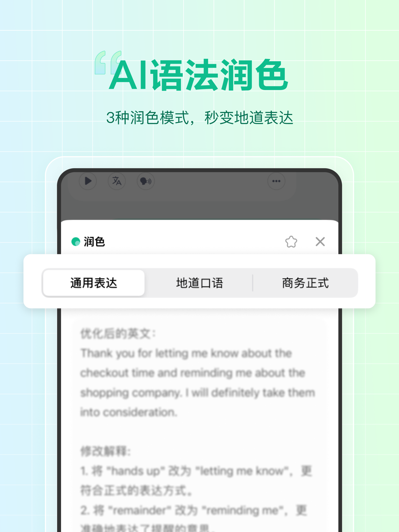 實(shí)時(shí)糾正:AI外教即時(shí)糾正語(yǔ)法和發(fā)音,助您改進(jìn)表達(dá)。