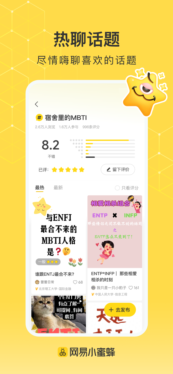 網易小蜜蜂APP,是年輕人分享和交流生活日常的內容社區,在這里你可以輕松獲得想要的生活節奏。下載網易小蜜蜂App,和全世界好看有趣的年輕人一起點亮生活!分享和發現世界的精彩!來網易小蜜蜂一起解鎖更多玩法,和小蜜蜂們換個姿勢討論當下熱點~