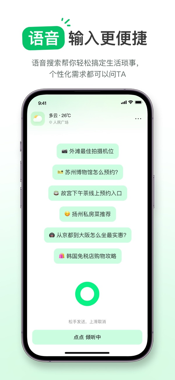自動定位與推薦:用戶在授權定位后,點點可以推送周邊的旅游攻略、美食推薦、展覽活動等信息,幫助用戶更好地規(guī)劃日常活動和出行。