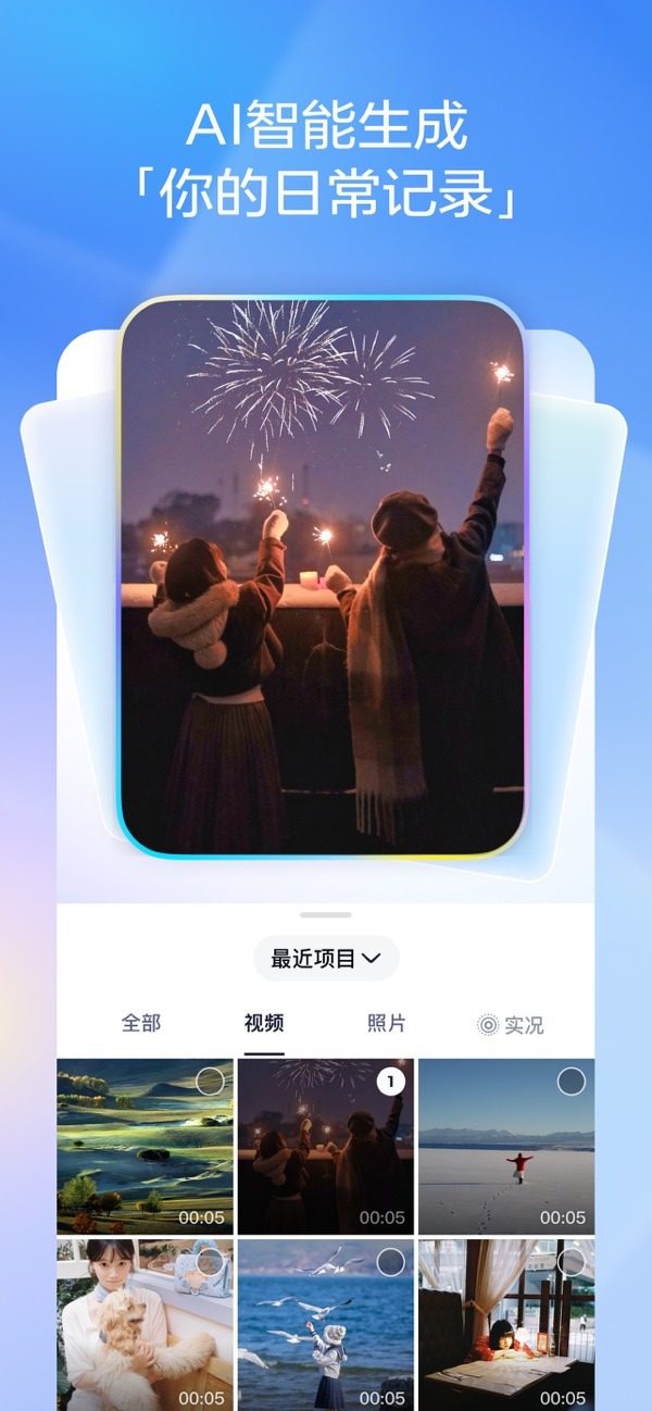 一鍵生成相冊回憶:支持批量處理素材,快速將生活碎片轉化為精彩視頻。